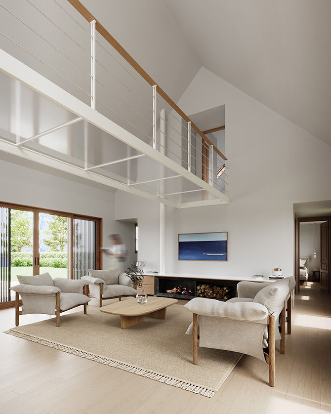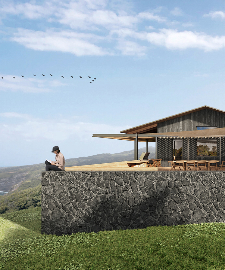 Belle Île, the ‘beautiful island’ off the Brittany coast has long been a holiday destination due to its seclusion, natural beauty and savage, wind-swept landscape. Taking cues from the surroundings, the design features of this new home celebrates the feeling of being perched on the edge of oceanside cliff with light, airy interiors while being protected by a steadfast stone fortress. The common spaces feature open volumes that are light and bright, while private spaces are compact and cozy. The materials and finishes take cues from the muted hues of wind-swept landscape and the texture of the historic architecture.