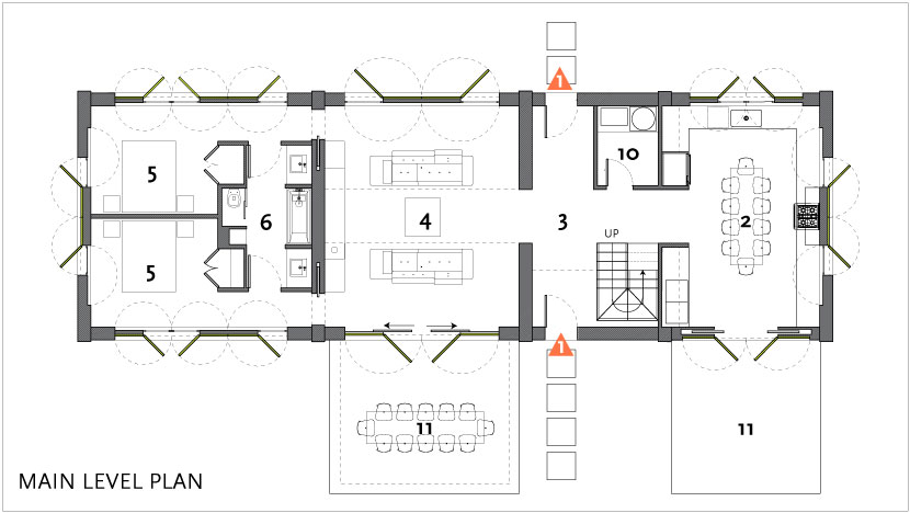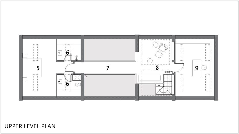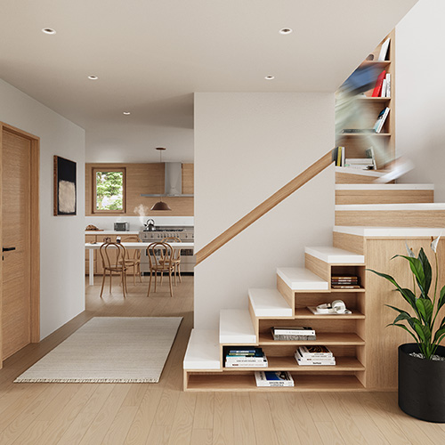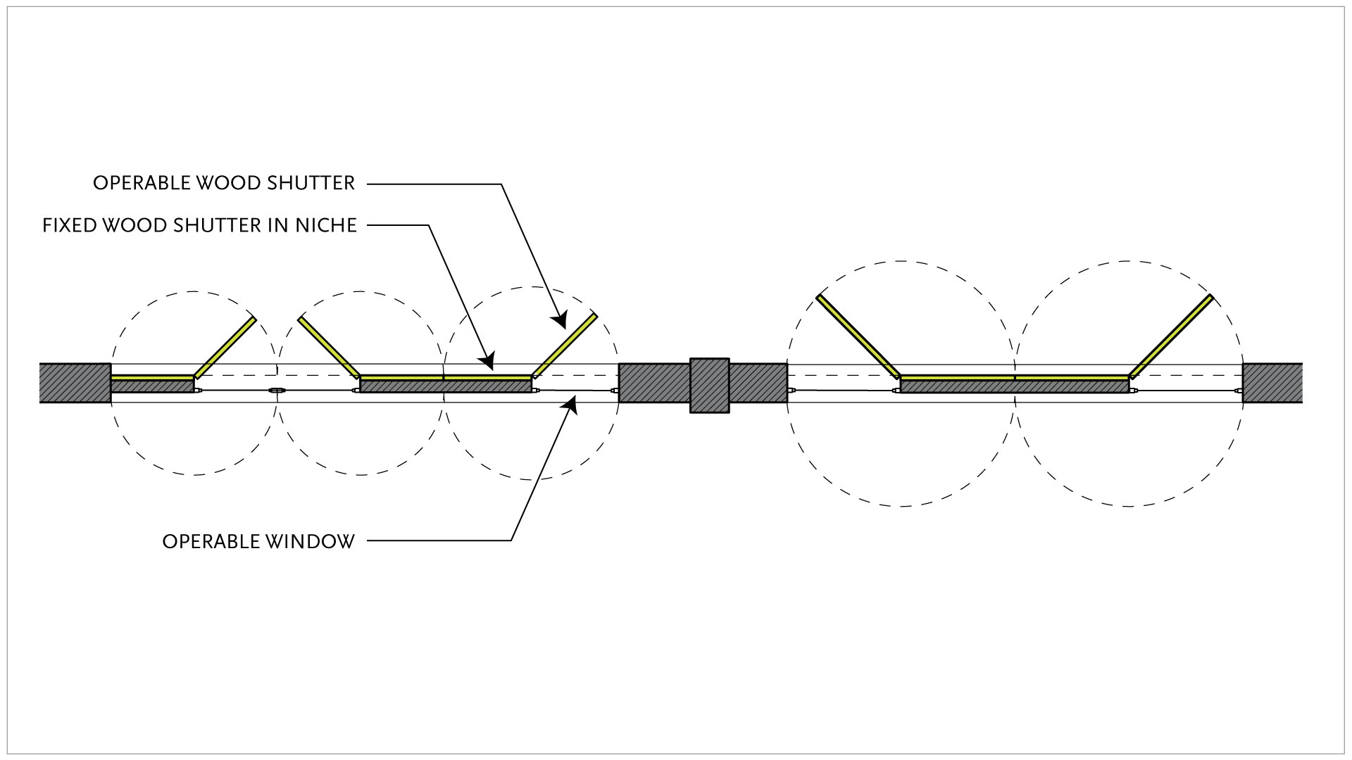 The ubiquitous architectural style of the region is stringently protected and governed by local regulation. The pitch of the roof, shape of the windows, use of shutters, material selections and color palette are largely predetermined.  The traditional architecture allows expression of individual style through color of window shutters and frames. When open, a bright blue shutter articulates a welcome gesture against a white wall. MAISON SAMZUN reinterprets that gesture through the use of wall niches where the shutters can nest in the open and closed position. When open, the shutter nests into the niche; in the closed position, the shutter reveals a twin wooden panel fixed within the niche. Together they express a long horizontal form on the face of the wall.
